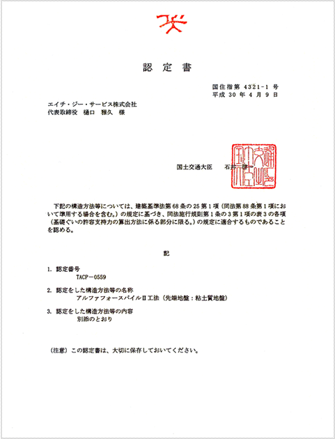 国土交通大臣認定書、国土交通大臣指定書及び建築技術性能証明書